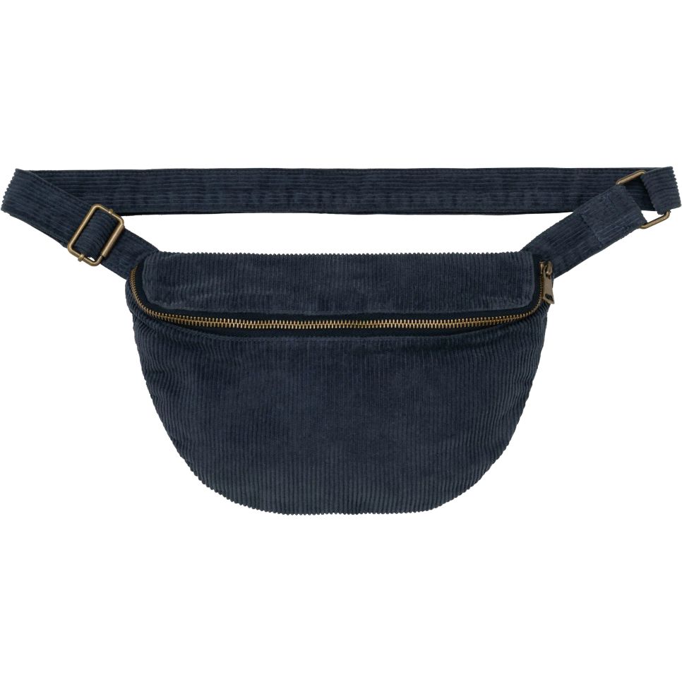Le sac banane en velours côtelé est confectionné en 100 % coton biologique. Il comporte une anse ajustable et une boucle de serrage en métal recyclé. Le tissu est teint pièce après montage, ce qui peut entraîner des variations de couleur. Le zip d'ouverture est en métal recyclé. Ce produit peut déteindre au contact de surfaces ou vêtements clairs. La personnalisation est possible selon le projet.