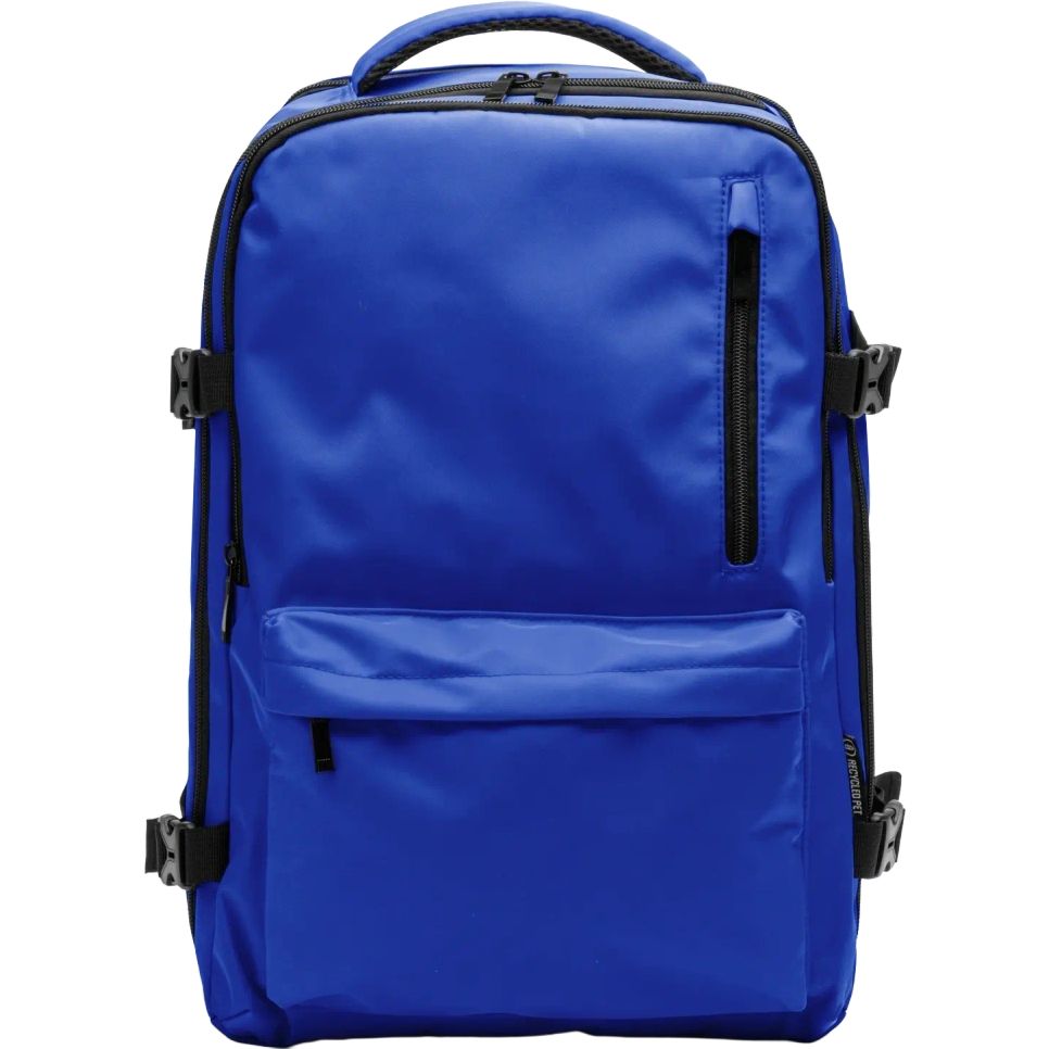 Le sac à dos Banter imperméable en RPET convient au transport des effets personnels et d'un ordinateur portable jusqu'à 16\". Compartiment principal, poche avant doublée imperméable et poche arrière de sécurité. Bretelles et dos rembourrés, avec sangle chariot.