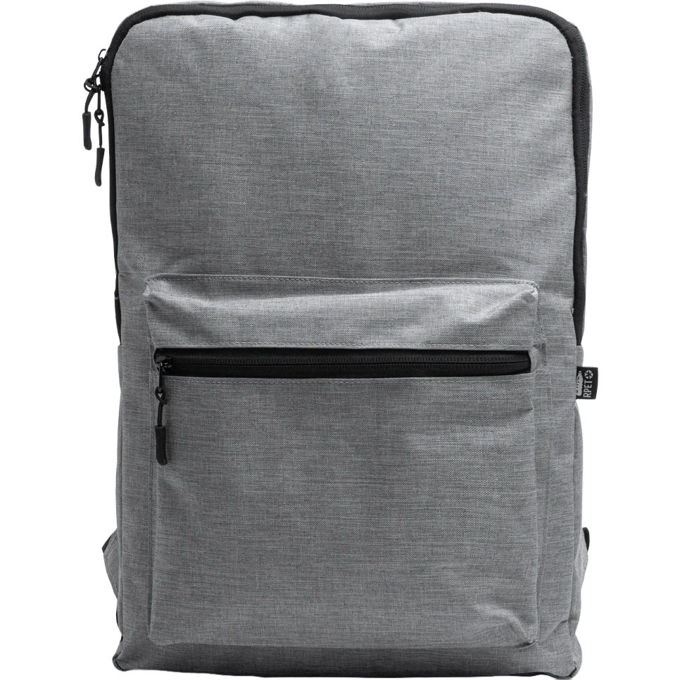 Le sac à dos Benza en polyester recyclé RPET 300 D convient aux déplacements professionnels, avec un compartiment principal et des poches pour organiser documents et accessoires. Rangement pour ordinateur portable ou tablette jusqu'à 30 cm. Bretelles réglables rembourrées et poignée de transport. Personnalisation possible.