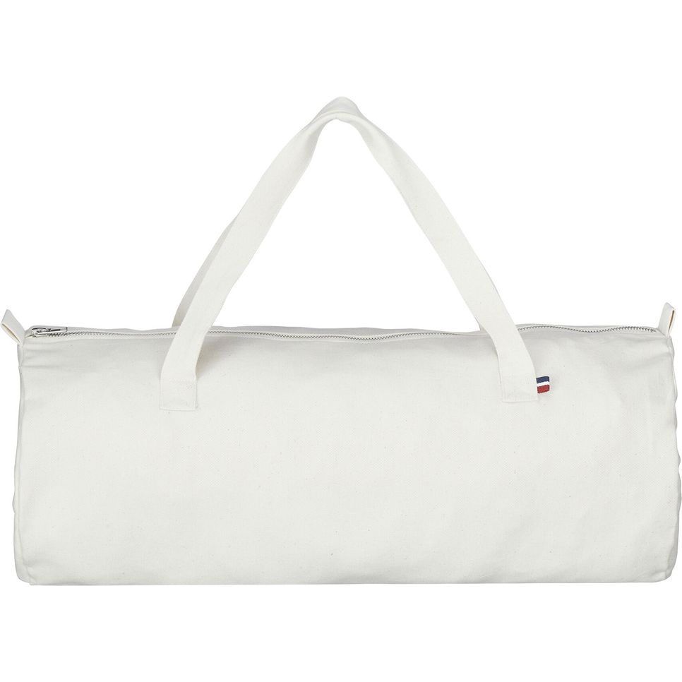 Le sac bowling Brieuc en coton recyclé convient au transport d’effets personnels au quotidien ou en déplacement. Fermeture zippée métal, anses doublées avec renforts de couture, écartement des anses 24,5 cm pour personnaliser. Composition : 50% coton recyclé, 50% coton. Dimensions sac : 52 x 22 x 22 cm. Capacité : 12 L.