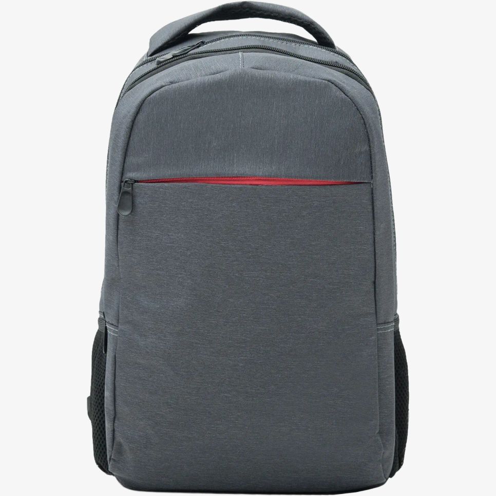 Le sac à dos Chucao pour ordinateur portable en tissu chiné comprend une double anse renforcée, deux poches centrales, une poche avant avec zip contrasté et des poches latérales en filet. Étiquette détachable, finition résistante à l’eau, personnalisable.