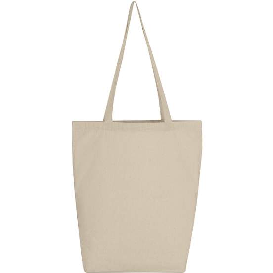 Le sac shopping Cotton bag Gusset en 100% coton dispose d'un soufflet pour augmenter la capacité et faciliter le transport des courses ou d'autres objets. Longues anses d'environ 70 cm. Personnalisable.