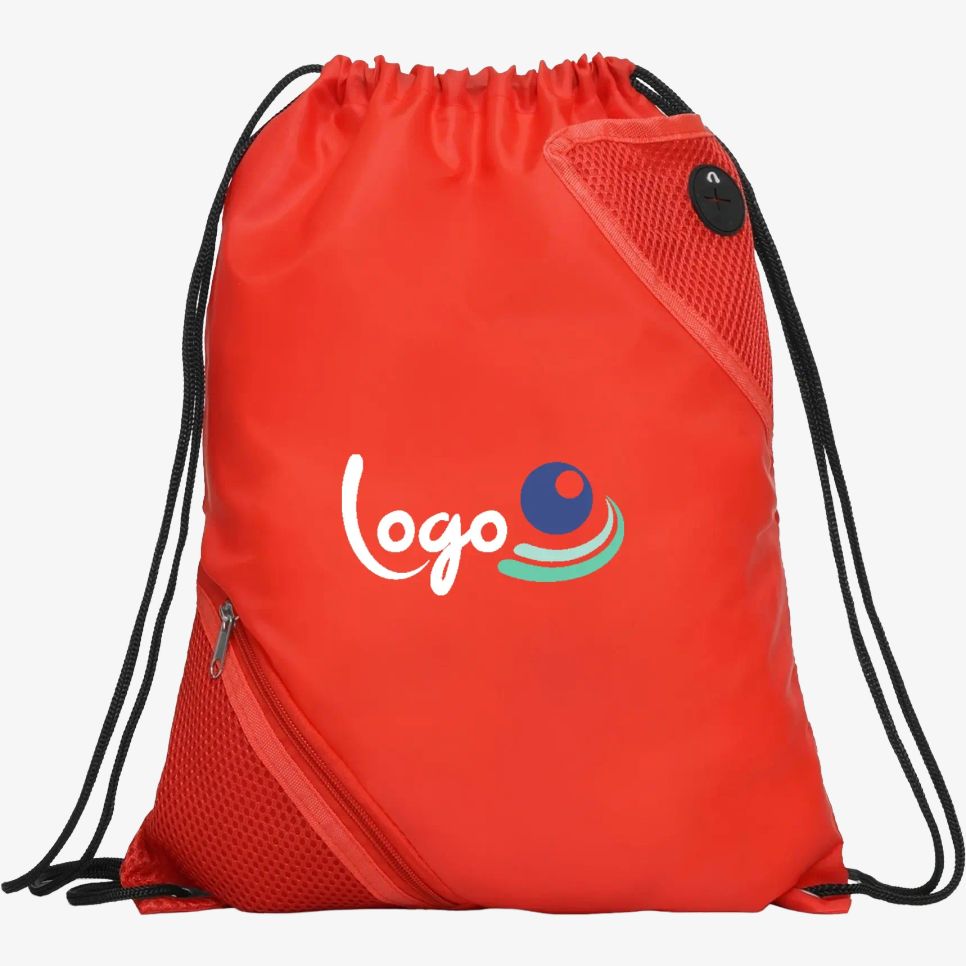 Le sac de gym Cuanca est un sac à dos multiusages en 100 % polyester, avec cordon de serrage pour ajuster au dos, poches frontales en tissu micro perforé et oeillets pour câble audio. Dimensions : 34 x 43 cm.