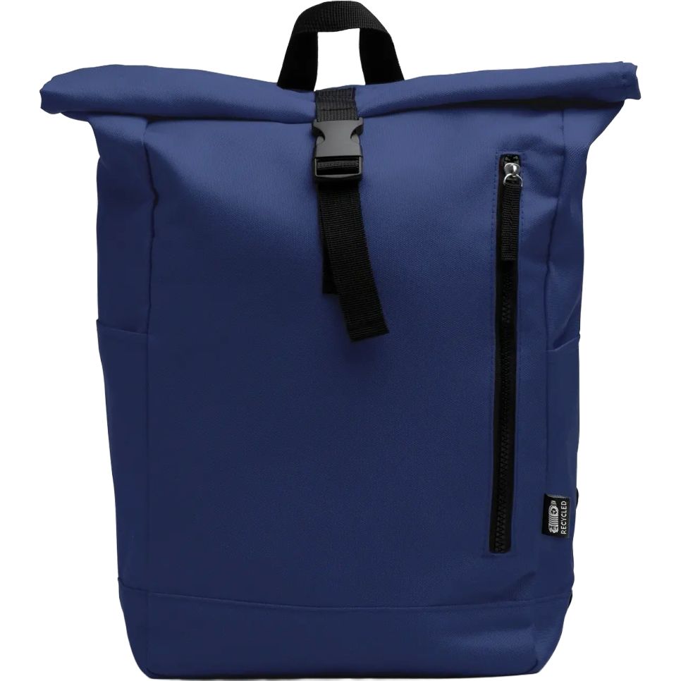 Le sac à dos Dronte en polyester RPET recyclé comprend un compartiment principal spacieux avec ouverture extensible, une poche extérieure zippée et deux poches latérales. Bretelles et dos rembourrés. Dimensions : 26,5 x 52,5 x 16 cm. Personnalisable.