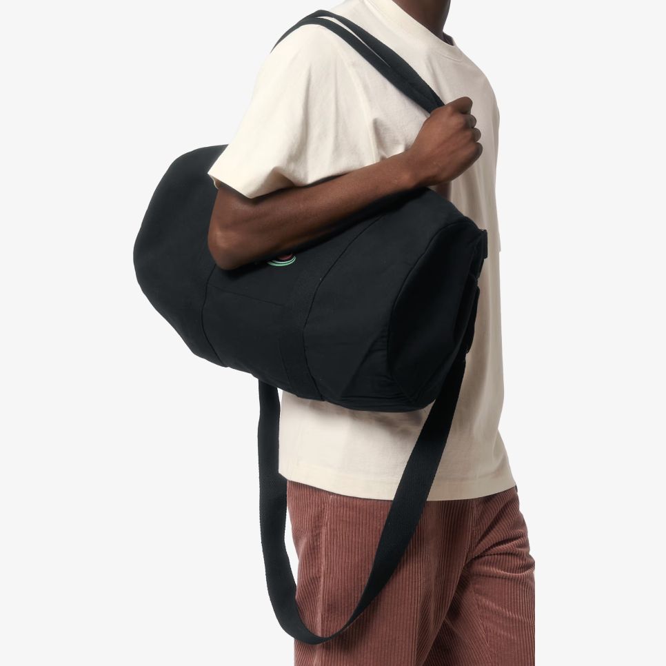 Le Duffle bag est un sac de sport en toile conçu pour transporter des affaires du quotidien. Anses en gros grain et bretelle amovible pour varier le port. Poche avant et poche intérieure pour organiser le contenu. Composition : 80% coton recyclé, 20% polyester recyclé. Dimensions : 51 x 27 cm.