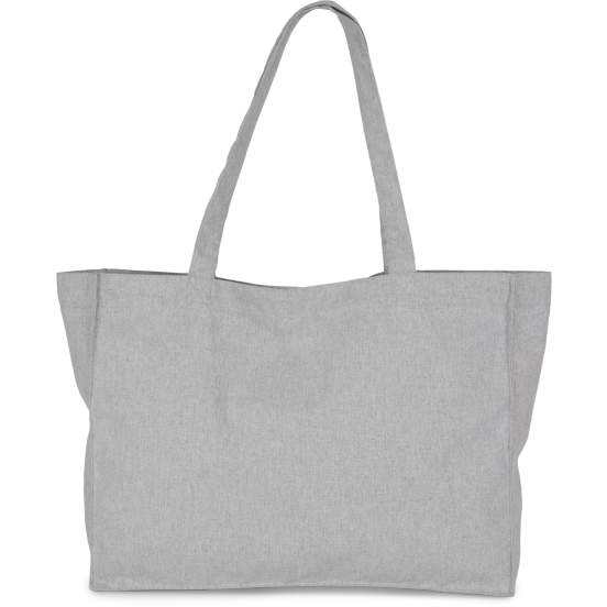 Le Grand sac Shopping k loop est un sac shopping rectangulaire avec poignées dans le même tissu. Composition : 70% coton recyclé et 30% polyester recyclé issu de bouteilles PET. Capacité : 26 litres. Dimensions : 49 cm x 14 cm x 37 cm. Personnalisable.
