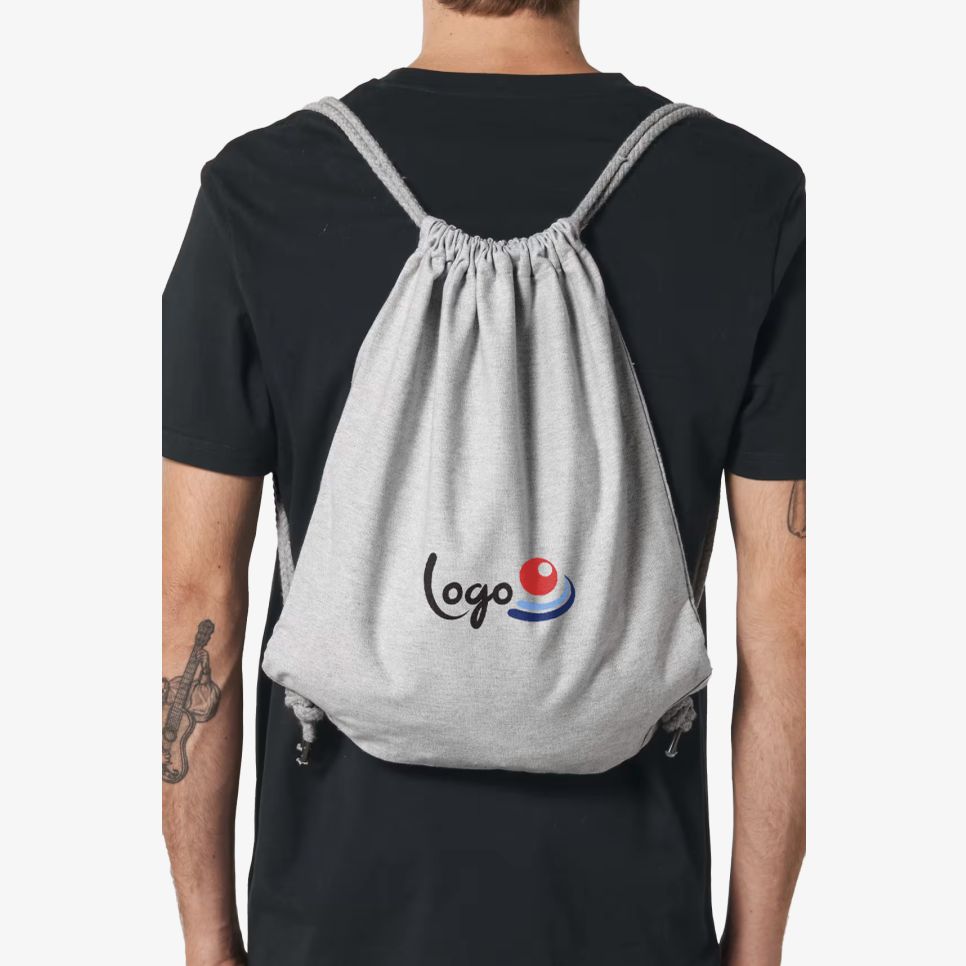 Le sac à dos Gym bag en toile avec cordon coulissant convient au transport d’affaires au quotidien. Tunnel renforcé, cordon épais noué aux extrémités, œillets métal couleur bronze et renforts triangulaires aux coins inférieurs. Convient à la personnalisation.