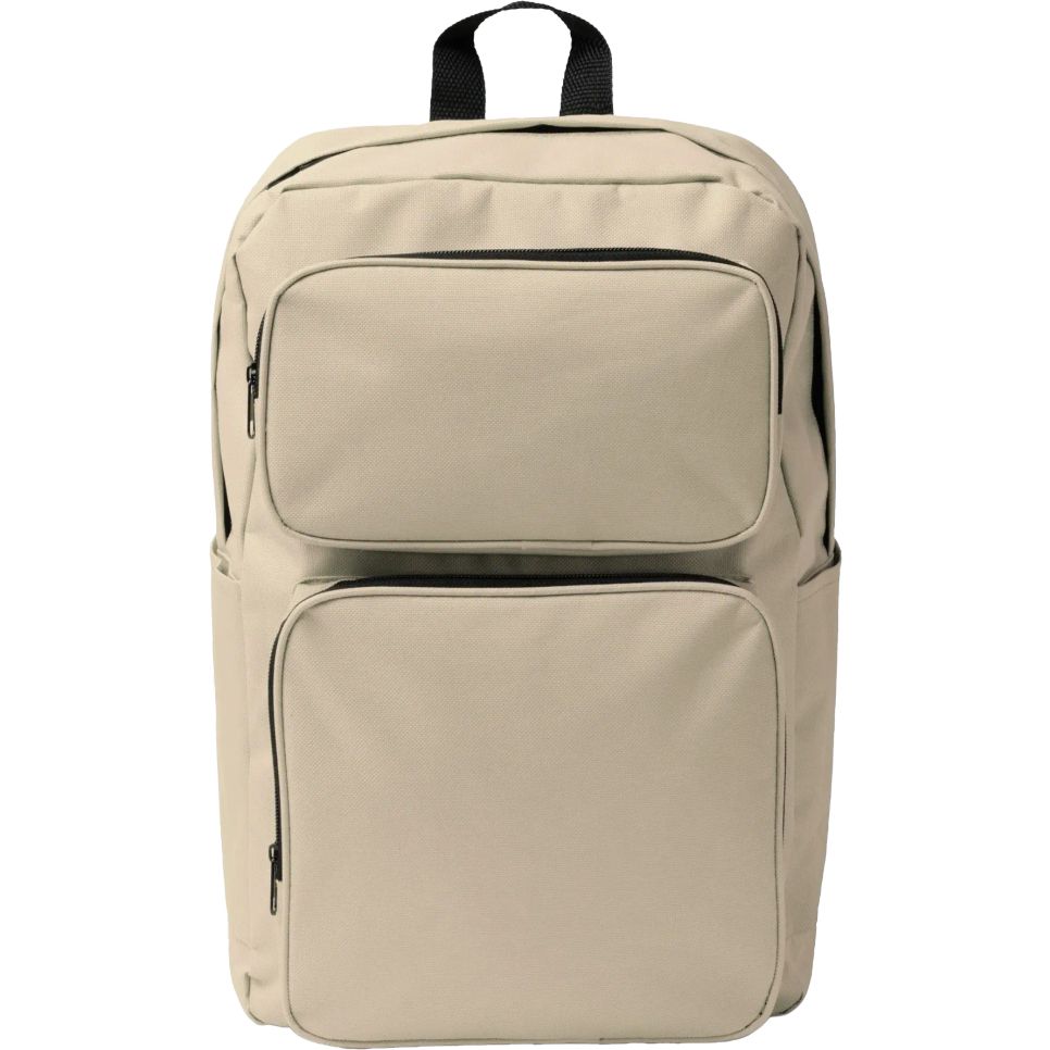 Le sac à dos Hostik en RPET 600 D intègre une double poche avant zippée, deux poches latérales et des sangles dos rembourrés. Convient au transport quotidien et peut être personnalisé. Dimensions : 27 x 40,5 x 21 cm.