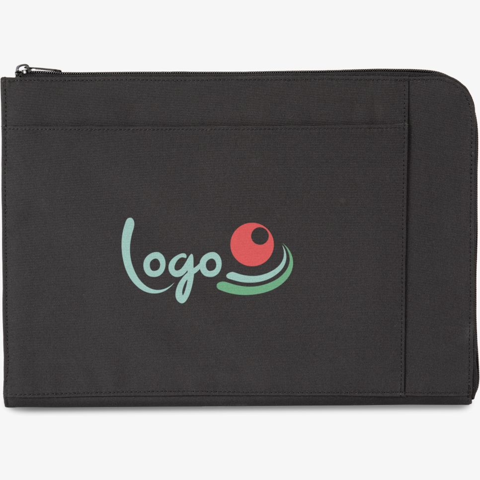La housse pour tablette documents Kialma par K Loop convient au rangement de documents et d’une tablette, avec rembourrage, fermeture zippée en L sur deux côtés et pochette intérieure. Composition : 100% polyester recyclé. Dimensions : 25 cm x 36 cm. Personnalisable.