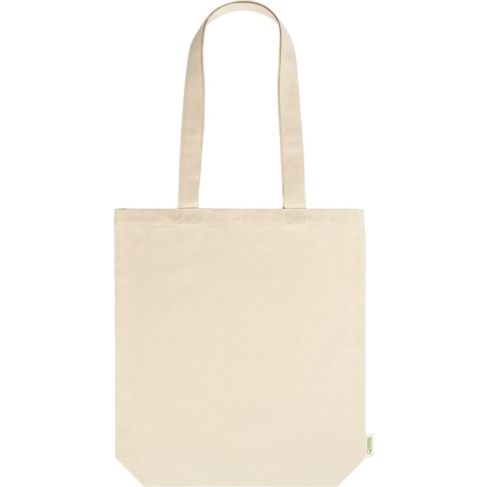 Le sac shopping coton biologique Kensal convient au transport quotidien, avec un soufflet pour augmenter la contenance et des anses de 70 cm pour un porté épaule. Personnalisable.