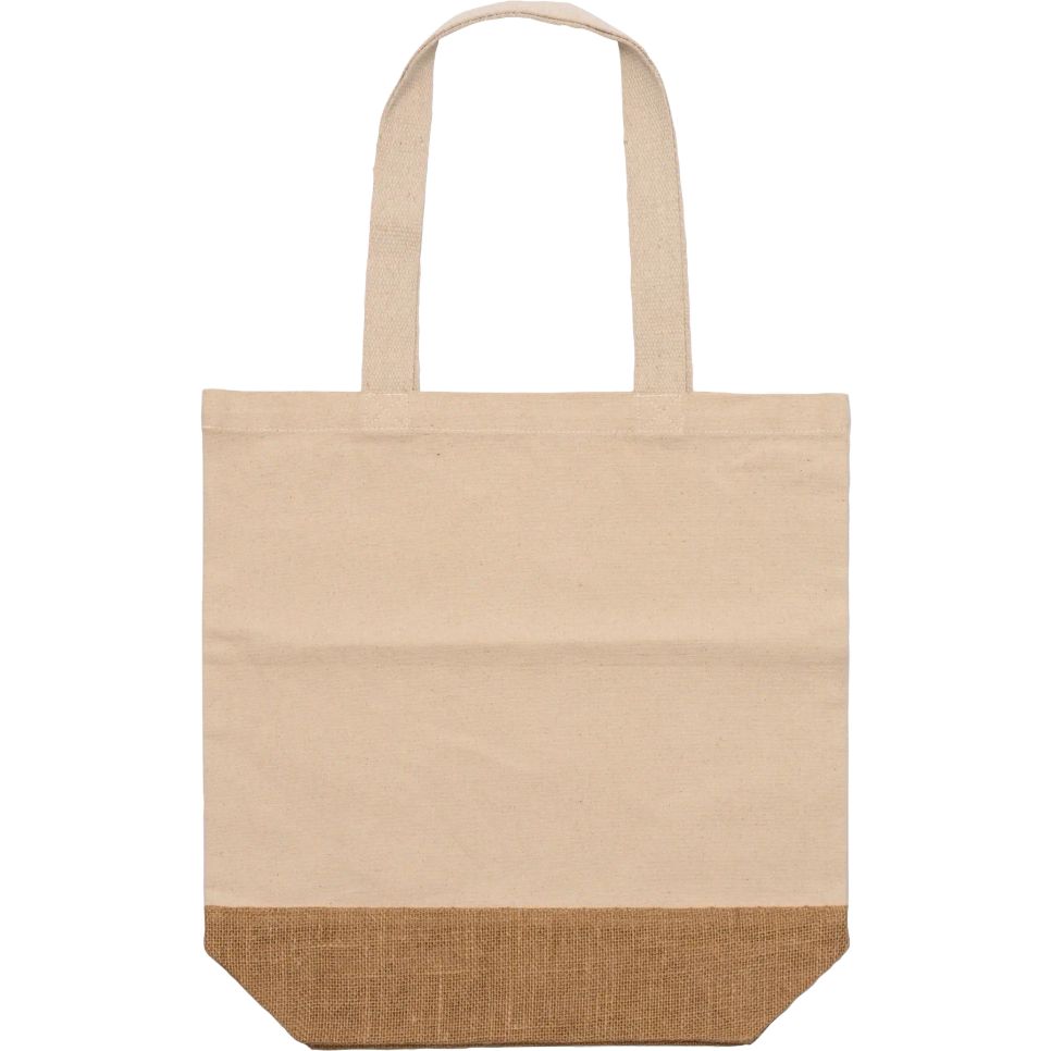 Le sac shopping Mendes en coton recyclé et jute naturelle convient au transport quotidien et aux courses, avec des poignées longues de 70 cm pour un port à l’épaule. Dimensions : 41 x 41 x 13 cm.
