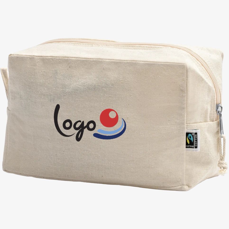 La trousse pochette Naro en coton Fairtrade convient au rangement des essentiels de toilette ou d’accessoires. Fermeture zippée et format 21 x 13 x 8 cm. Personnalisable.