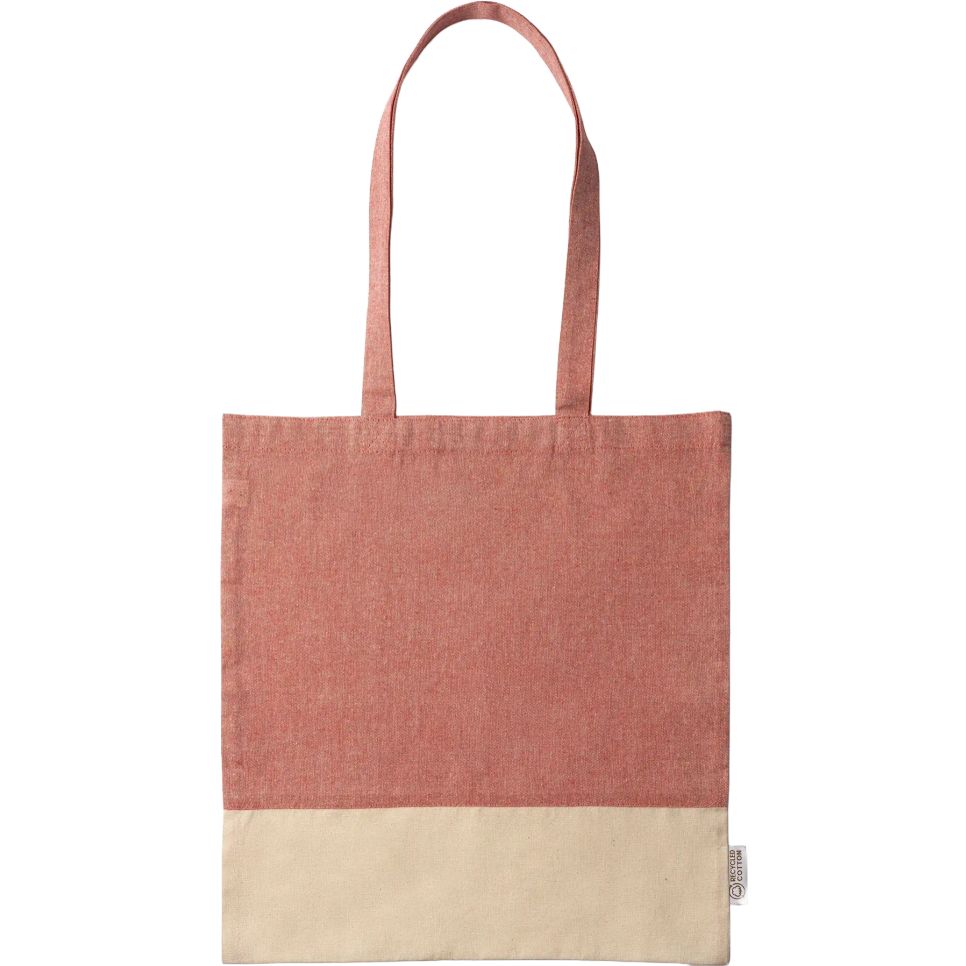 Le sac shopping Palmira en coton recyclé avec aspect chiné. Poignées renforcées de 70 cm. Dimensions 38 x 42 cm. Composition : 100 % coton recyclé. Adapté à la personnalisation.