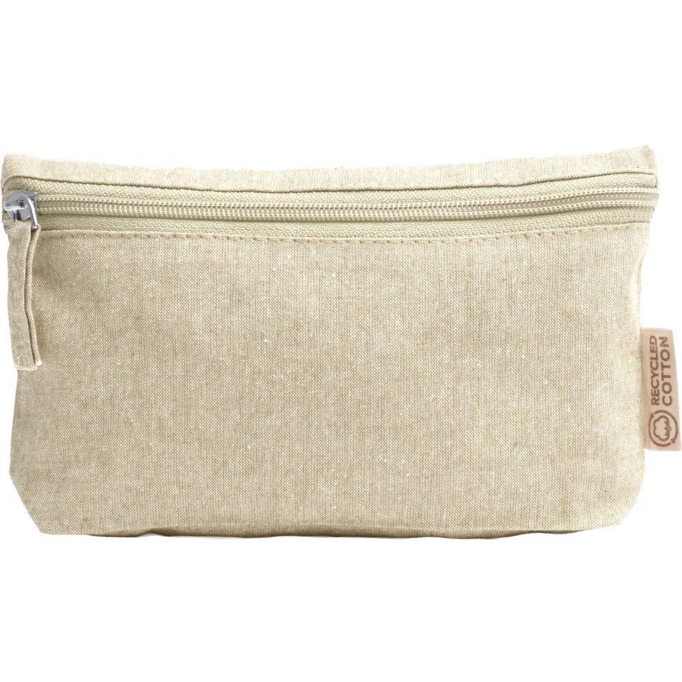 La trousse pochette Remo en coton recyclé convient pour ranger des articles de toilette ou de petits accessoires. Format compact avec zip et tirette assortis, adaptée à un usage quotidien. Personnalisation possible.