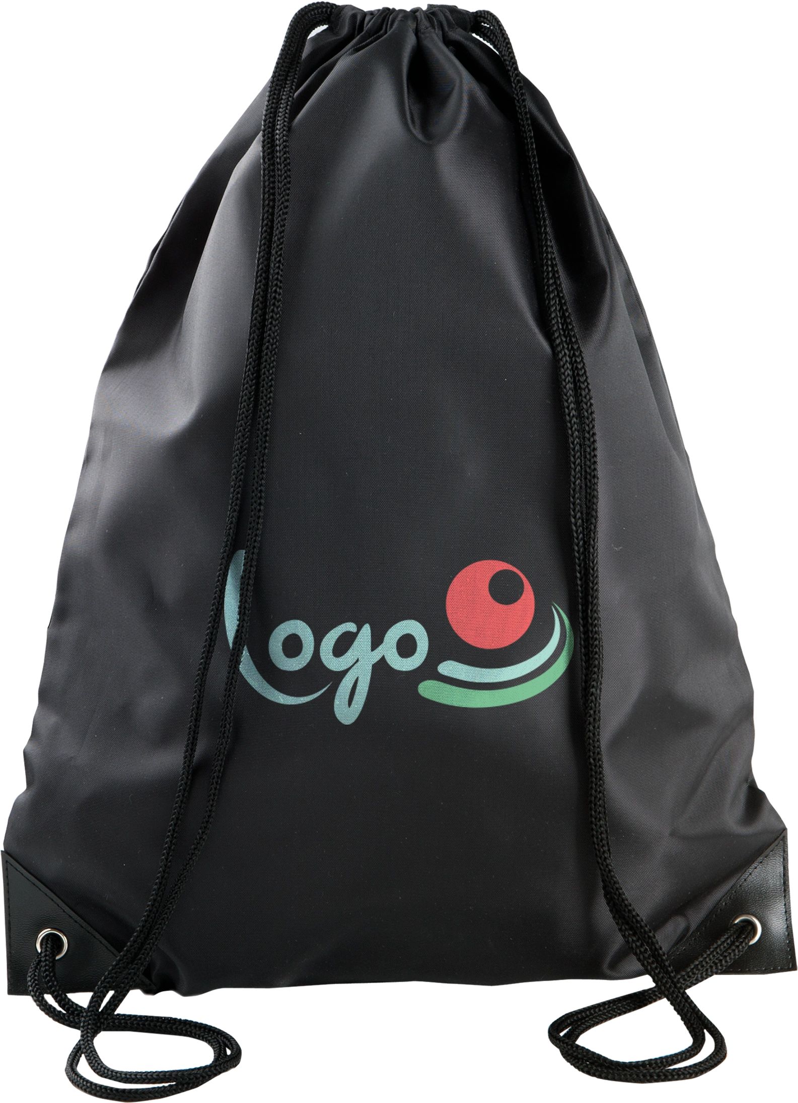 Sac à dos en polyester 210D avec cordelettes et coins renforcés. Composition : 100% polyester.