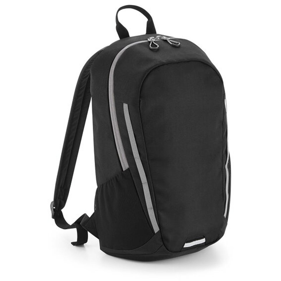 Sac à dos avec anse pour le transport. Bretelles réglables rembourrées. Panneau arrière rembourré et compartiment principal avec fermeture à glissière. Poche intérieure zippée et poche plaquée. Poches latérales en maille élastiquée. Parties réfléchissantes. Étiquette détachable TearAway, facile à ré-étiqueter. Capacité : 18 litres. Dimensions : 31 x 48 x19 cm. Composition : 100% Polyester.