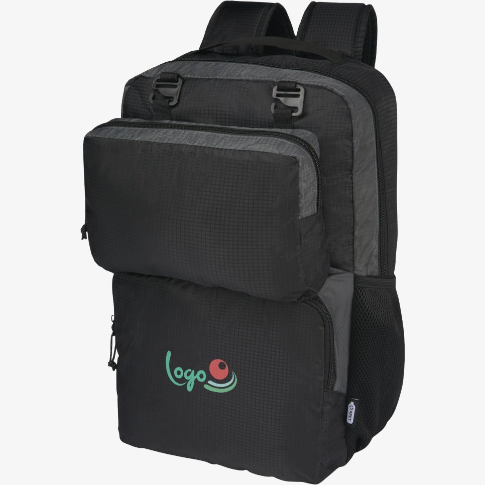 Le sac à dos pour ordinateur portable Trailhead 14 L en ripstop polyester recyclé hydrofuge avec doublure recyclée convient au transport quotidien d'un ordinateur jusqu'à 15 pouces, avec organisation interne, poches latérales et sac banane zippé amovible. Personnalisation possible.