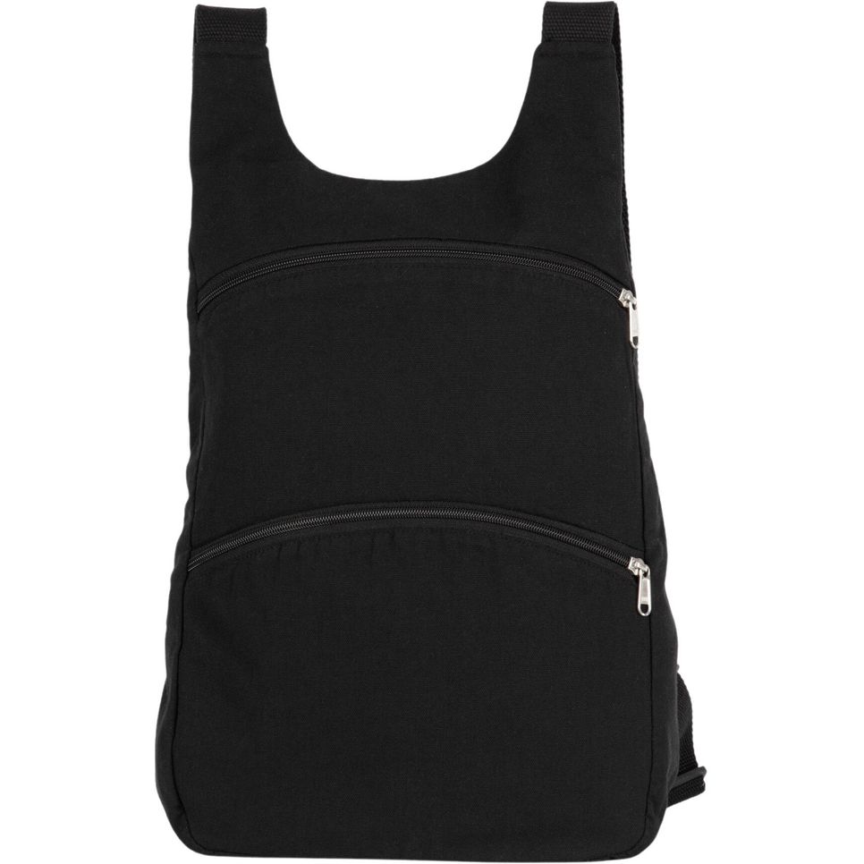 Le Sac à dos en coton recyclé et polyester recyclé convient aux déplacements quotidiens, avec un compartiment principal, une poche avant zippée et une poche arrière zippée placée au bas du dos. Bretelles larges pour un port plus confortable. Personnalisation possible. Dimensions : 28 x 10 x 40 cm.
