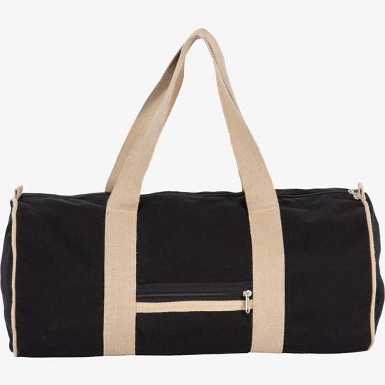Le sac polochon recyclé bicolore permet de transporter des affaires au quotidien ou en déplacement. Les poignées cousues tout le tour facilitent la prise en main. Une poche avant zippée aide à garder certains objets accessibles. Article personnalisable.
