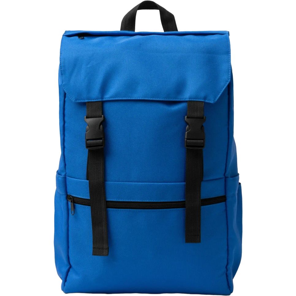 Le sac à dos Solap en RPET 600 D avec rabat et fermetures réglables convient au transport quotidien, avec compartiment principal, poche intérieure pour ordinateur portable 15 po, poche avant zippée et poches latérales élastiquées. Dimensions : 28,5 x 43 x 11,5 cm.