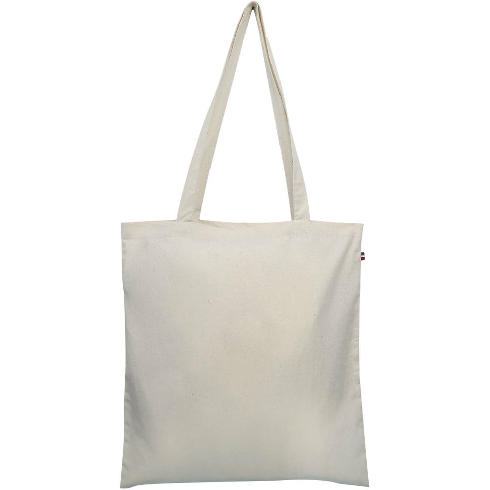 Ces élégants sacs à provisions (tote-bags) en coton sont fabriqués en France et peuvent être personnalisés avec votre logo. Ils sont dotés de deux poignées, ce qui vous permet de porter le sac à la main ou à l'épaule, selon vos préférences. De plus, le détail tricolore sur le côté ajoute une touche de style unique. La taille de chaque sac est de 39x42cm pour une capacité de 10 litres. Grammage : 150g/m². Composition 100% coton, issu de l'agriculture biologique.