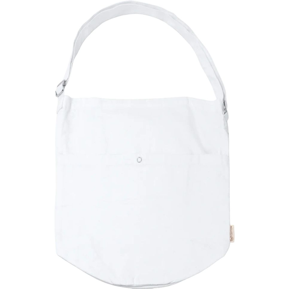Le sac shopping Torla en coton recyclé comprend une poche avant, une poche intérieure et une fermeture boutonnée. Poignée réglable. Dimensions : 37 x 42 x 22 cm. Personnalisable.
