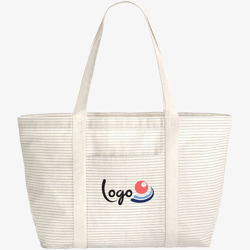 Le Tote bag Rayé Coton bio est un sac shopping en coton biologique, adapté au transport des courses et des effets personnels. Format 45 x 37 x 14 cm, capacité 21 litres, avec anses pour un port à la main ou à l\"épaule. Personnalisable.