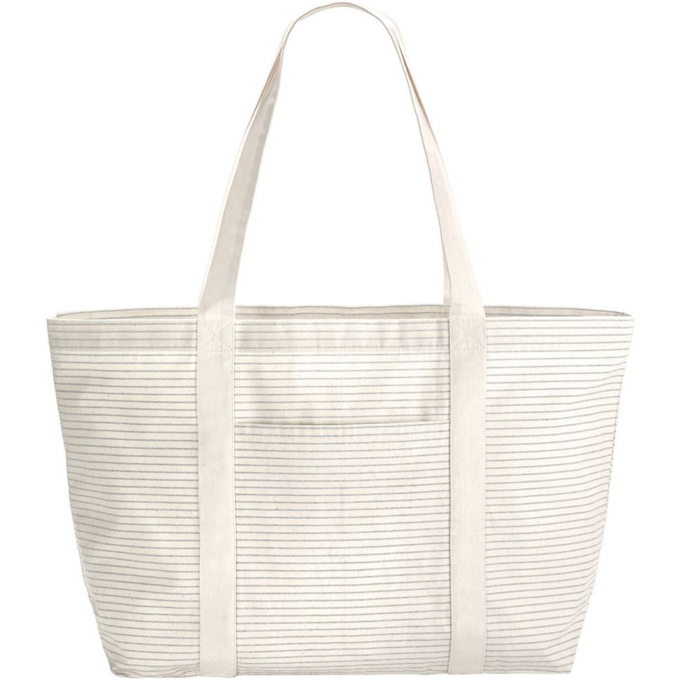 Le Tote bag Rayé Coton bio est un sac shopping en coton biologique, adapté au transport des courses et des effets personnels. Format 45 x 37 x 14 cm, capacité 21 litres, avec anses pour un port à la main ou à l\"épaule. Personnalisable.