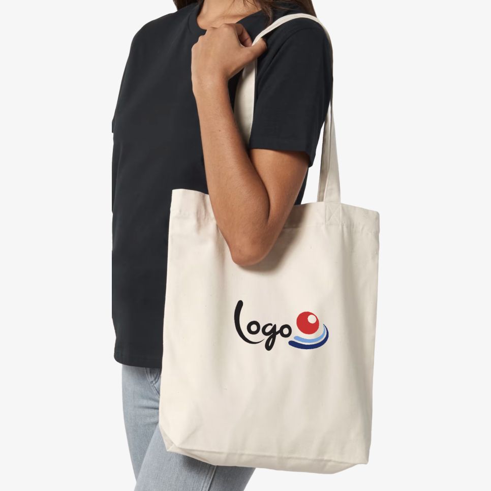 Le Tote bag est un sac shopping en toile au format 39 x 37 cm, adapté au transport d’effets personnels au quotidien. Sa matière à base de fibres recyclées convient aux usages répétés et peut être personnalisé.