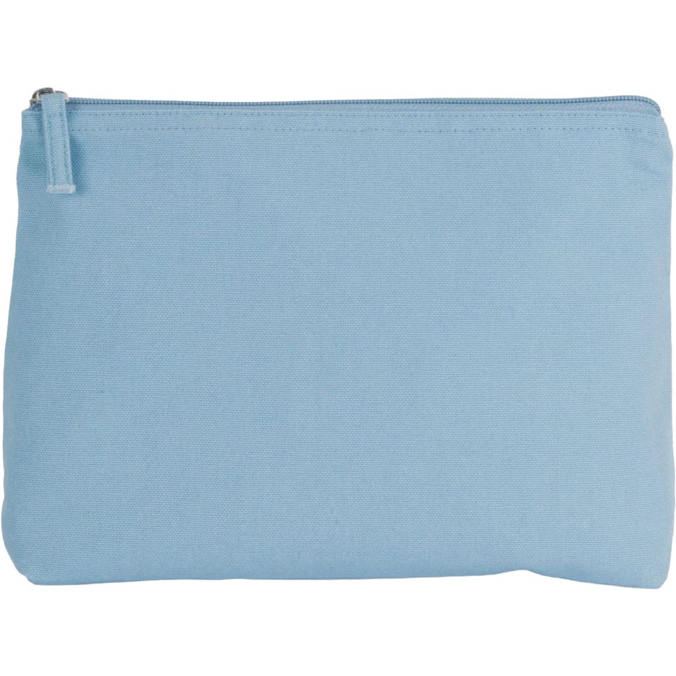 La trousse toilette en coton avec fond plat et fermeture à glissière convient au rangement des essentiels de soin et d’hygiène. Des variations de couleur peuvent apparaître selon les séries.