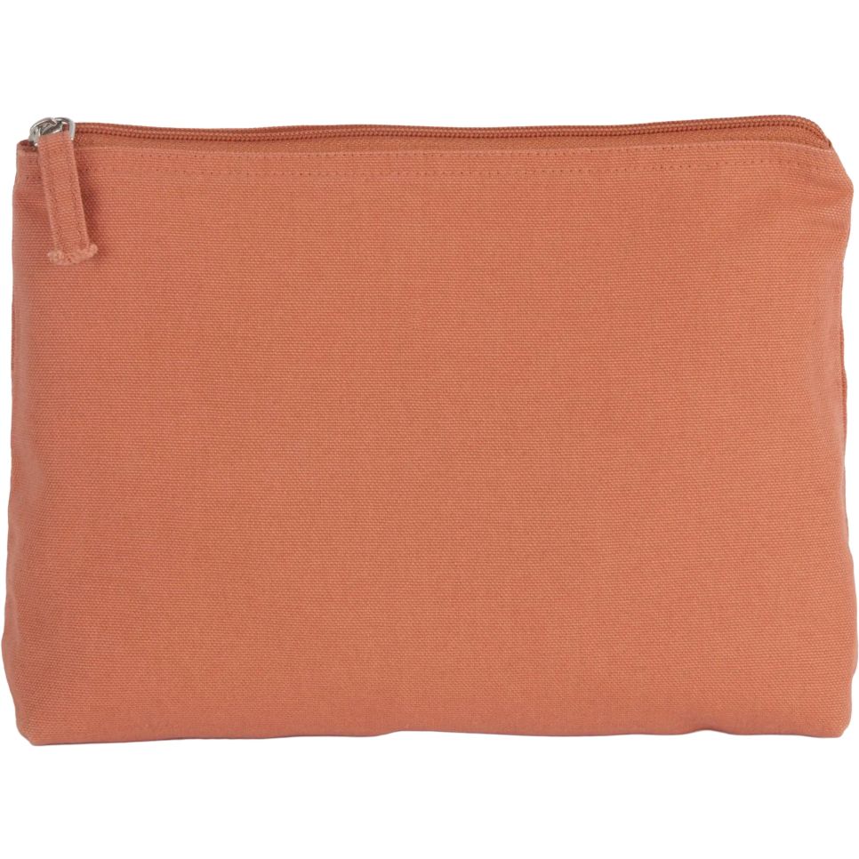 La trousse toilette en coton avec fond plat et fermeture à glissière convient au rangement des essentiels de soin et d’hygiène. Des variations de couleur peuvent apparaître selon les séries.