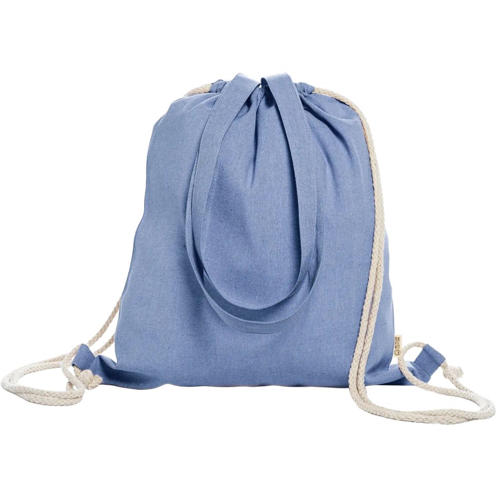 Le sac à dos Varese à cordon convient au transport d’affaires du quotidien. Finition marbrée, anses assorties et cordons de couleur naturelle de 70 cm. Composition : polyester et coton recyclé. Dimensions : 38 x 42 cm. Possibilité de personnaliser.