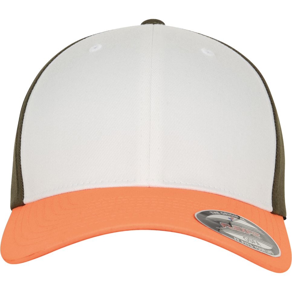 6277TT - 3-Tone Flexfit Cap - neon_orange/white/olive