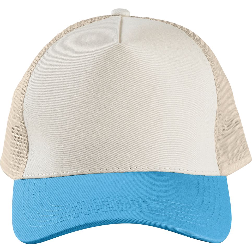 La casquette Blink 5 panneaux combine un panneau avant en coton brossé et un arrière en filet mesh 100% polyester. Fermeture Snapback avec réglette plastique. Composition : coton, polyester. Personnalisation possible.