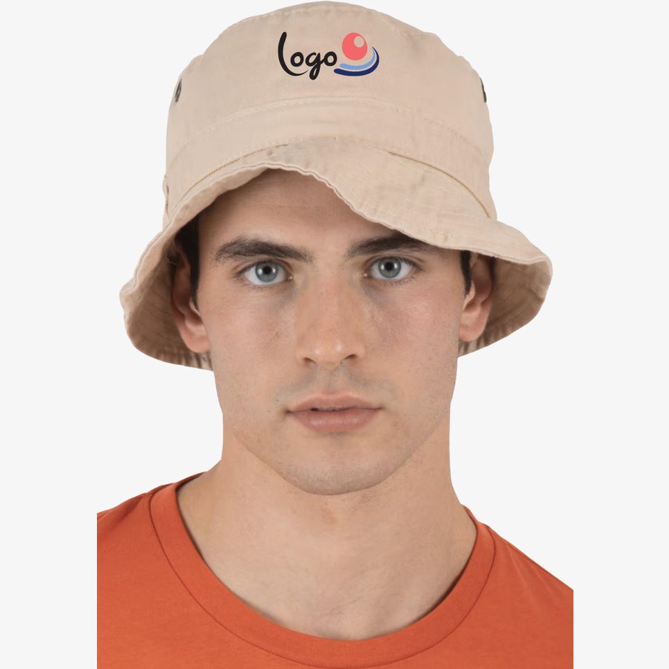 Le bob Bob Voyager en coton sergé délavé convient aux usages quotidiens. La bande anti-sudation et les œillets d’aération contribuent au confort, avec envers beige contrasté. Personnalisable.