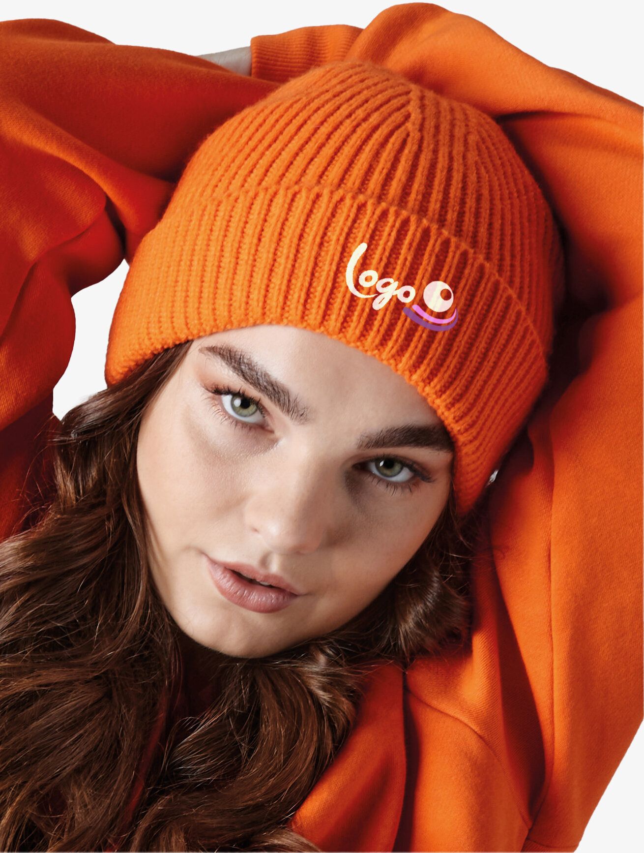 B380 - Bonnet en maille côtelée à pinces invisibles - orange