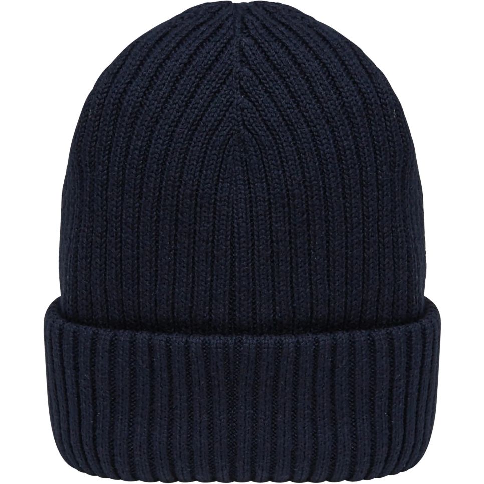 Le bonnet unisexe est conçu en 100 % coton biologique avec un tricotage côte 2 x 2 et un montage tricoté "Fully Fashion". Il comporte un double revers et un fil peigné qui contribuent à sa structure.