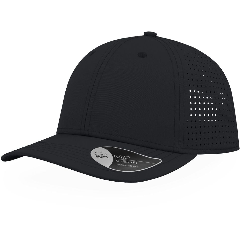Casquette 6 panneaux. Visière préformée. Œillets cousus. 6 coutures sur la visière. Panneau arrière et latéraux perforés. Composition : 100% nylon