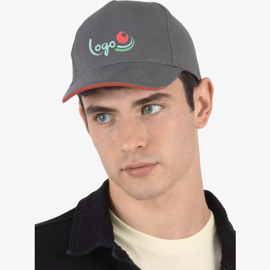 Casquette 5 panneaux avec sandwich contrasté permettant de se démarquer. Un choix idéal pour vos besoins en casquettes personnalisées.