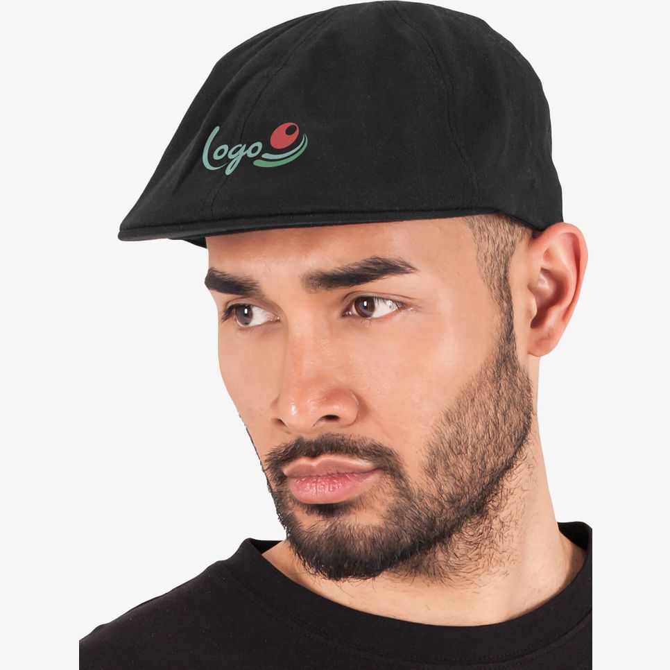 La casquette gavroche Driver cap convient à un usage quotidien avec sa visière plate et sa construction six pans. Sergé à chevrons en 98 % coton et 2 % élasthanne, avec bande Flexfit et sous-visière assortie. Personnalisable.
