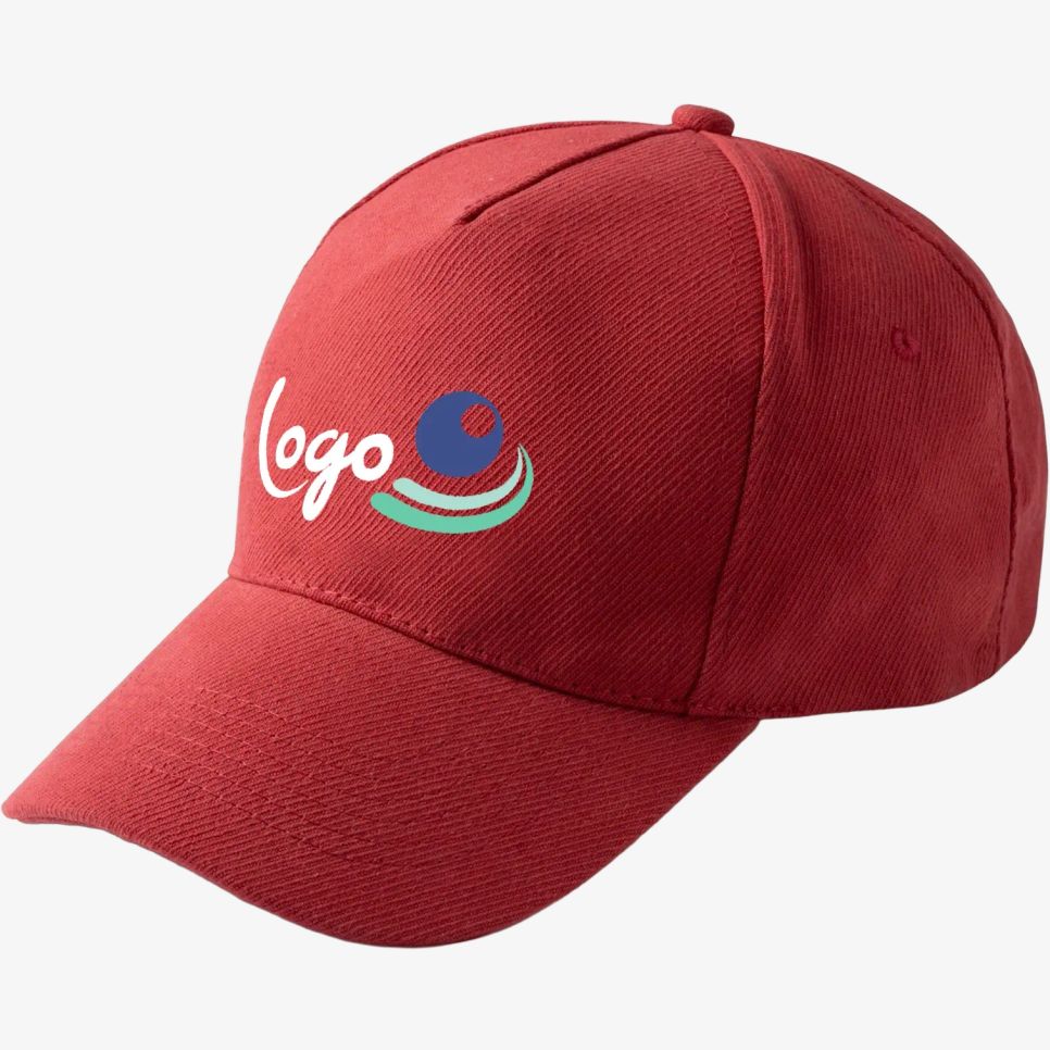La casquette Fred à 5 empiècements en coton avec boucle réglable et œillets d’aération convient à un tour de tête adulte 57–59 cm. Composition : coton. Personnalisation possible.