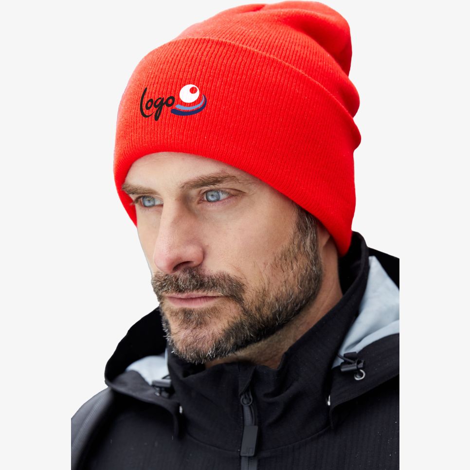 Le bonnet High brim Beanie est un bonnet tricoté en 100% acrylique, avec revers extra-large et double épaisseur. Sa grande hauteur améliore la couvrance et le confort au porter. Bonnet personnalisable selon besoin.