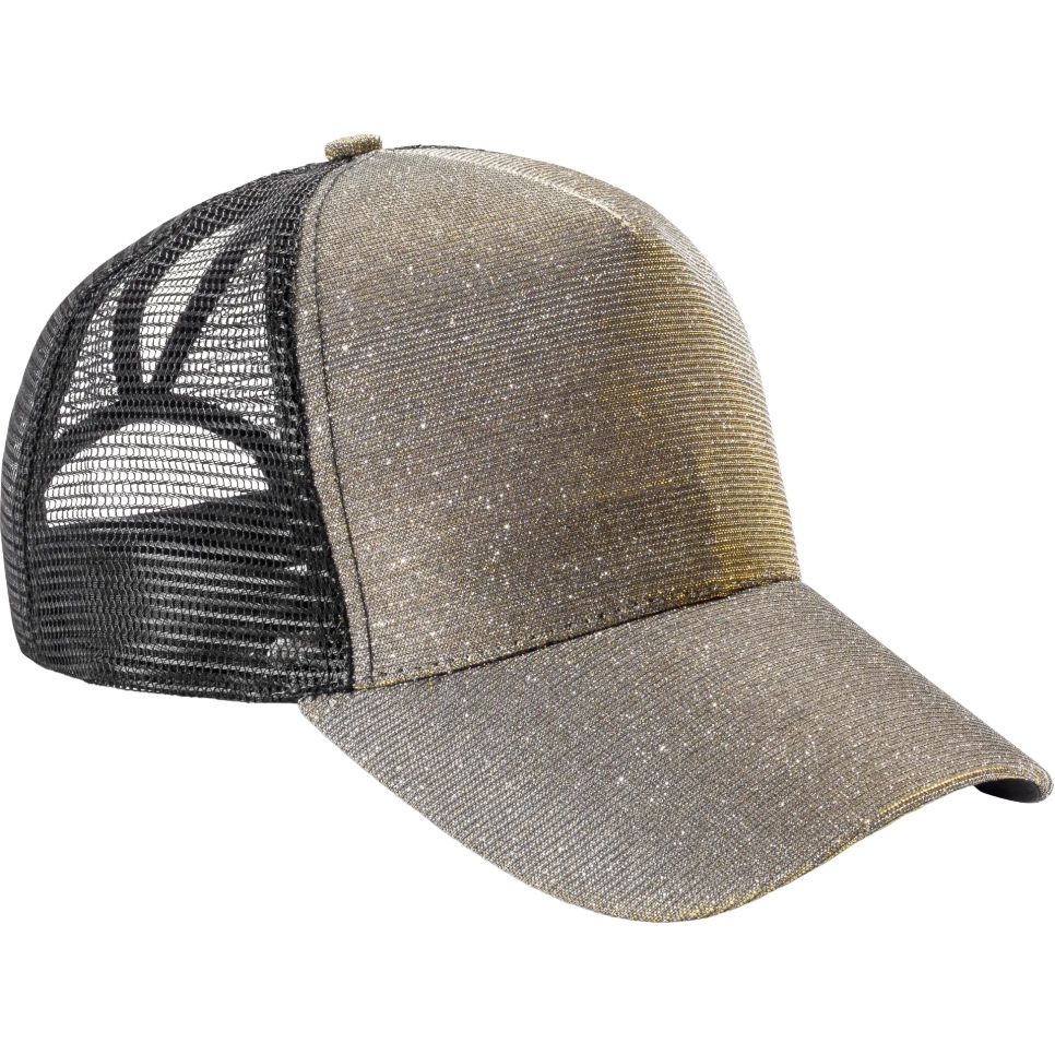 La casquette Sparkle cap convient à un usage courant avec sa construction à 5 pans, dont 4 pans filet et 1 pan avant matelassé pailleté. Sa visière courbée et son réglage par bande auto-agrippante facilitent l'ajustement. Le tour de tête indiqué est de 58 cm. La personnalisation est possible.