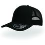 Casquette 5 panneaux. Panneau avant et visière en jersey. Filet mesh à l'arrière. Panneau avant renforcé. Visière précourbée. Sticker sur la visière. 8 coutures sur la visière. Bandeau en coton. Fermeture en pvc. Composition : 50% coton/50% polyester.