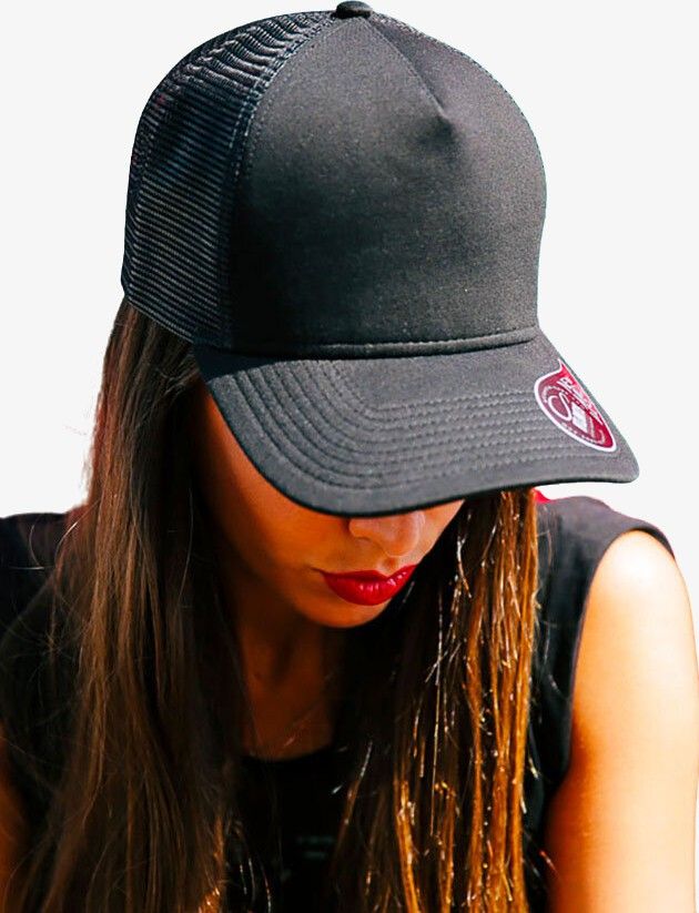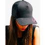Casquette 5 panneaux. Panneau avant et visière en jersey. Filet mesh à l'arrière. Panneau avant renforcé. Visière précourbée. Sticker sur la visière. 8 coutures sur la visière. Bandeau en coton. Fermeture en pvc. Composition : 50% coton/50% polyester.