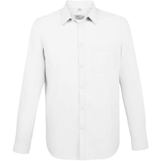 La chemise popeline Baltimore fit pour homme, \u00e0 manches longues, convient aux usages professionnels et quotidiens. Col classique renforc\u00e9, poche poitrine et poignets ajustables. Personnalisation possible.