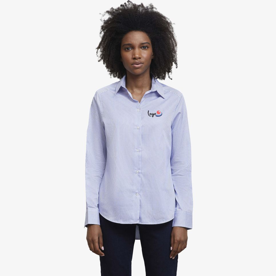 La chemise Baptiste Women est une chemise femme en coton rayé, easy care, à manches longues. Col italien renforcé, poignets ajustables renforcés avec patte capucin, patte de boutonnage simple. Empiècement dos avec passepoil et pli d’aisance. Fil teint. Traitement anti-froissage. Composition : 100% coton.