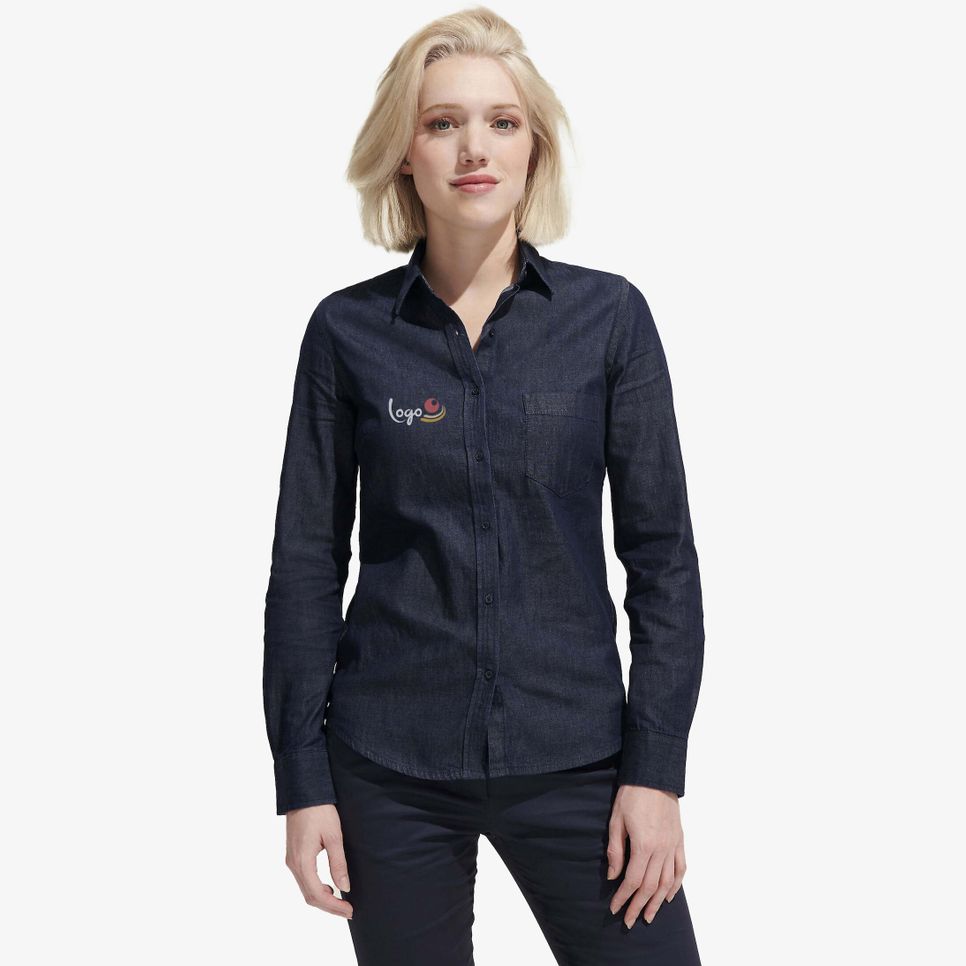 La chemise Barry Women est une chemise femme en denim 100% coton, adaptée aux usages du quotidien et aux tenues d\u2019\u00e9quipe. La mati\u00e8re en coton apporte un toucher naturel et une sensation agr\u00e9able. Mod\u00e8le personnalisable selon les besoins.