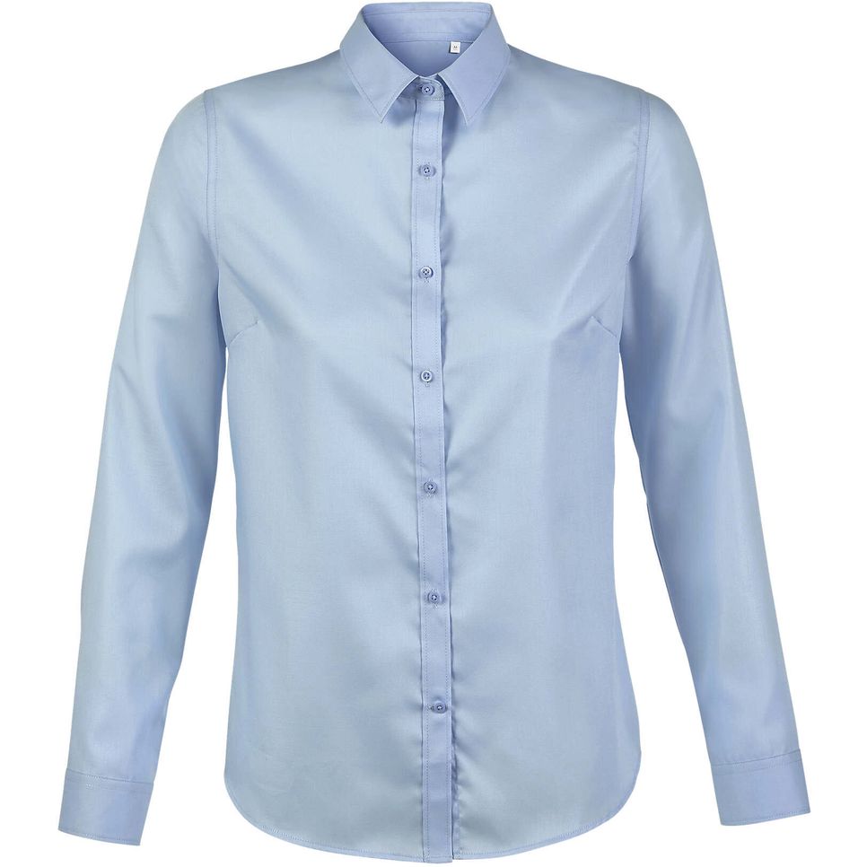 La chemise femme coton Blaise Women à manches longues avec col classique convient aux usages professionnels. Modèle sans repassage, poignets arrondis, patte 7 boutons avec 2 boutons ajustables, pinces poitrine et dos. Personnalisation possible.