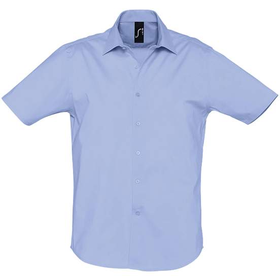 La chemise homme stretch Broadway manches courtes en popeline associe une coupe ajust\u00e9e et un tissu extensible pour faciliter les mouvements au quotidien. Col italien mi-ouvert avec bouton unique et patte de boutonnage \u00e0 7 boutons ton sur ton.